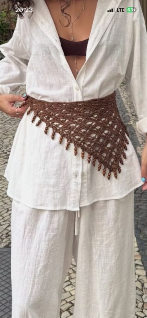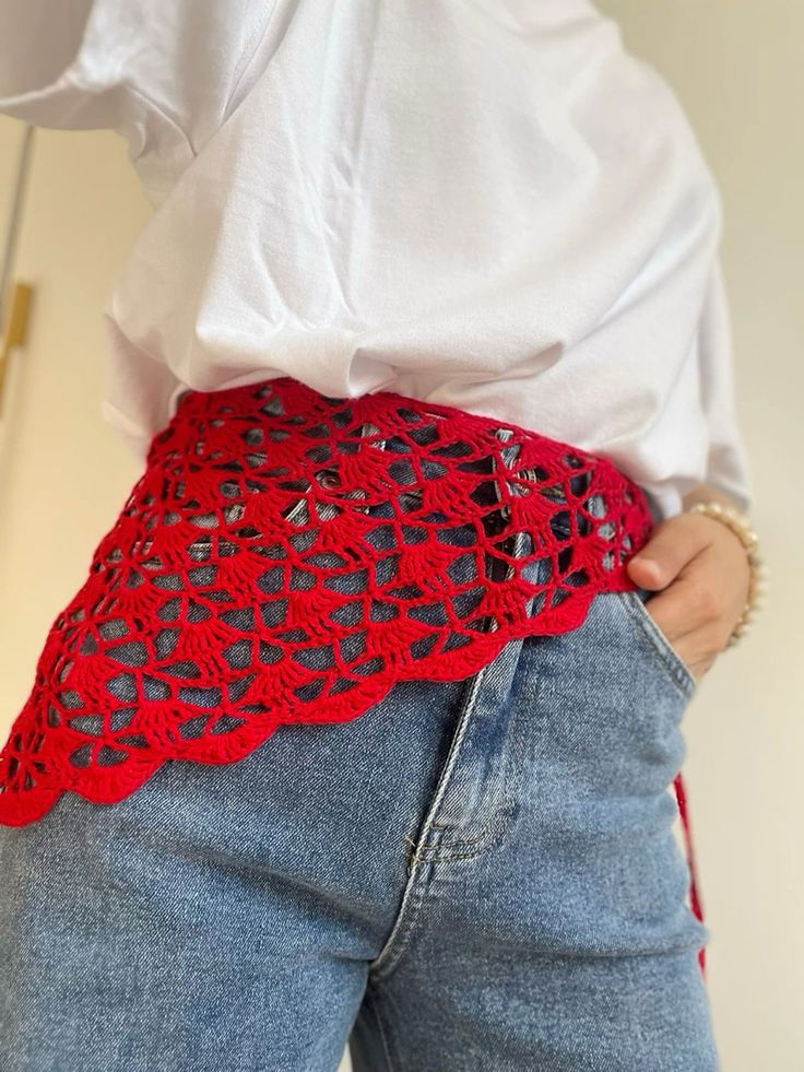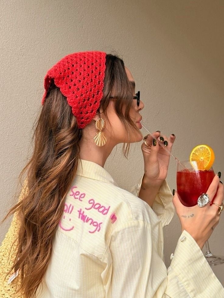 Las bandanas de ganchillo están a tope. No importa que sea verano o invierno; ahora mismo se están adaptando a cualquier look: puedes colocarlas en la cabeza, como se ha hecho toda la vida, o lo que está ahora mismo de última moda, que es llevarlas en la cintura sobre una camisola o pantalón vaquero.