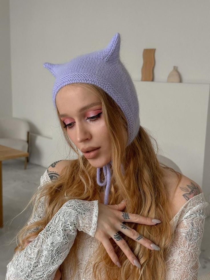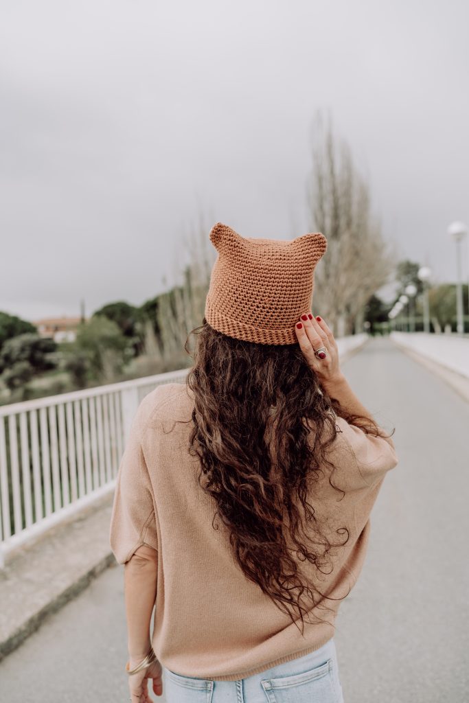 La última tendencia que voy a compartir contigo son gorros, pero no cualquier gorro. Ahora mismo se están viendo gorros divertidos y elegantes con orejitas. Este es un proyecto muy sencillo y agradecido de tejer.